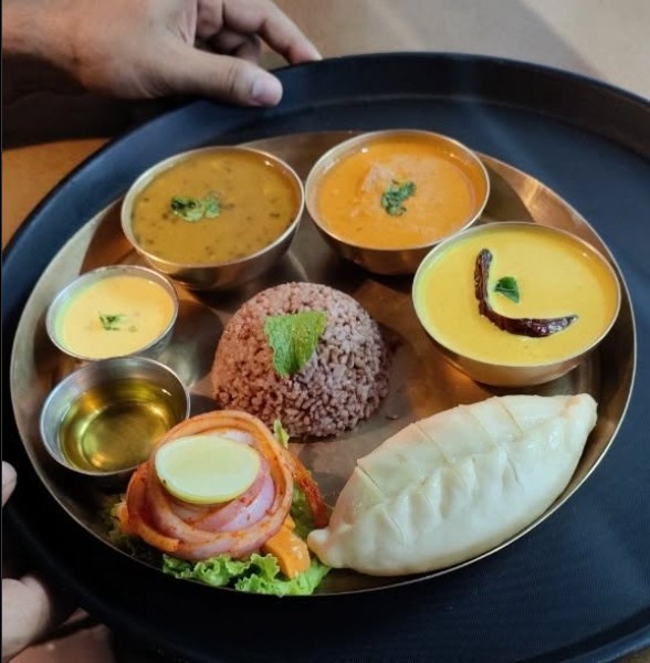 ๐ Vegetarian Thali(These thalis rotate based on regional themes and seasonal ingredients, making every visit a new experience)