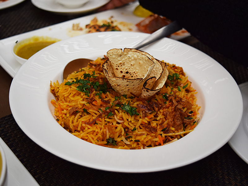 Each grain carries the gentle smokiness of dum-style cooking and the jackfruit pieces melt into the rice with their hearty, fibrous texture – rich, comforting and deeply satisfying. Served with cooling raita and papad, this dish is earthy yet elegant. It bridges the nostalgia of home-cooked comfort with restaurant finesse. For vegetarians (and even non-vegetarians), itโs a revelation – proof that flavour and depth donโt depend on meat but on mastery.